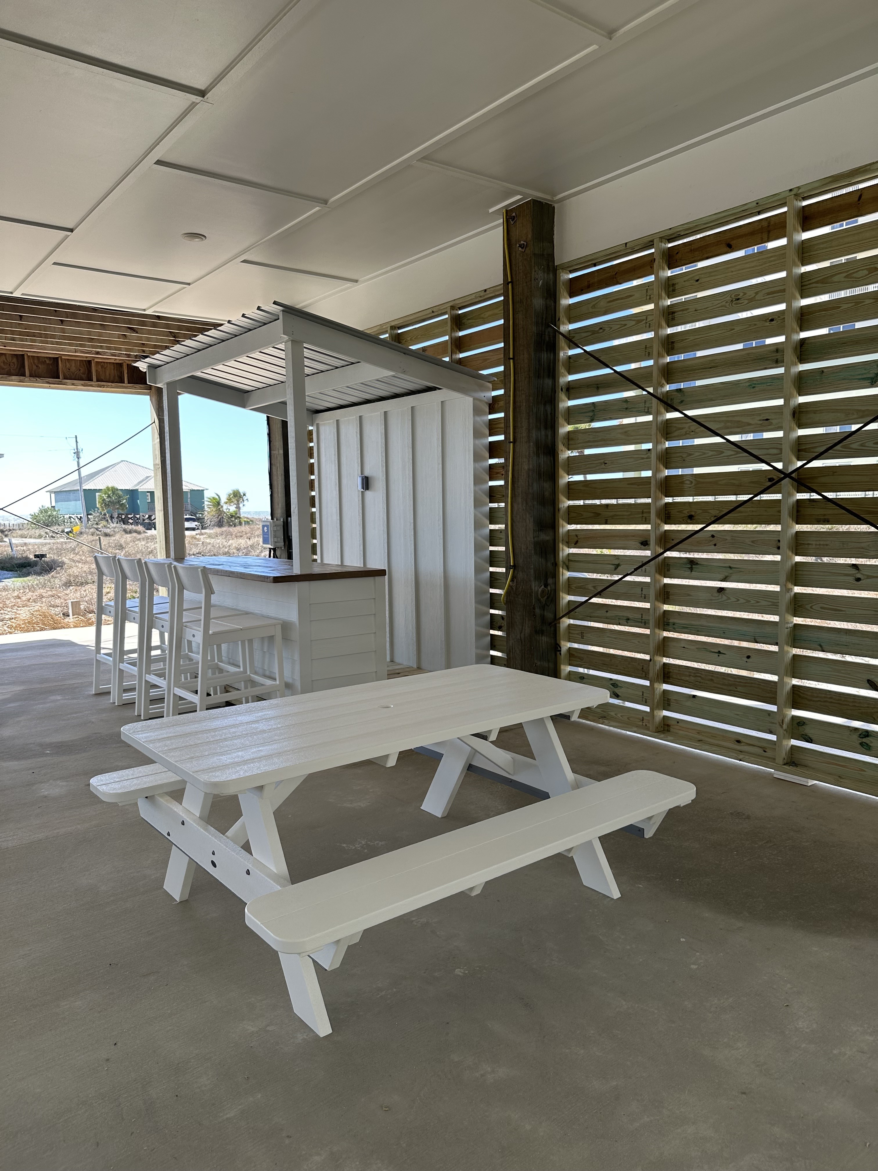 Welcome to the sought after Cabana Beach Community in Fort Morgan! Our house offers the relaxing experience of Fort Morgan combined with convenient access to Gulf Shores with major attractions being a short drive (~13 miles) away. Enjoy an easy 2 minute walk to our private community beach with little foot traffic and gorgeous views. We also offer access to all of the Beach Club Resort amenities which neighbors our community for a nominal daily fee. LIVING ROOM - large sectional with sleeper sofa - 2 swivel chairs - 75" Roku Smart TV (BYO Subscriptions) KITCHEN - GAS range/oven 🔥 - large island with seating for five - coffee station (Cuisinart drip, keurig, French press) ☕ - wine fridge 🍷 - ice maker 🧊 - refrigerator/freezer, microwave, toaster, crockpot - care taken to ensure our cookware is safe, for our family and yours - no teflon coatings here! - stock pot, mixing bowls, pizza rack, pans/skillets, cutting boards, etc - assorted spices provided PRIMARY BEDROOM - King bed - ensuite bathroom with custom floor-to-ceiling marble shower - linens/towels and starter shampoo/soap provided - walk-in closet - 65" Roku Smart TV - direct access to deck SECOND BEDROOM - 2 custom Twin/Full bunk beds (anchored) - Roku Smart TV - closet THIRD BEDROOM - King - Roku Smart TV - closet OUTDOOR - New hot tub on the ground floor, pics coming soon! FAMILY FRIENDLY - stainless steel plates, utensils for kids - Pack 'n play and high chair provided - several board and card games, corn hole provided DECK - Polywood deck and furniture - large dining table (seating for 8) - Two loungers - 2 bar height Adirondack chairs Outdoor Living Area - underneath house with partial privacy walls - outdoor seating with sectional, chair backs - picnic table - Tiki Bar, bar stools - hot tub LAUNDRY - washer/dryer - starter dish/laundry detergent provided - vacuum, broom, mop, iron/board provided - professional cleaning before each stay! GENERAL - bring your own subscriptions for Smart TV Streaming - linens/towels & starter shampoo/soap provided - security cameras (ring doorbell, parking area) on site for your protection - Rental agreement - required to sign within 48 hours of booking; NO PETS, no parties - Large park grill on site - BYO charcoal - beach buggy, beach chairs, toys etc - condition not guaranteed due to guest use - not guaranteed with booking, but The Beach Club Resort hosts a FIREWORKS show on Memorial Day & 4th of July which is easily viewed from the deck of the house with cocktail in hand - very nice perk for families with children! ATTRACTIONS - 1.8 miles to KIVA Dunes - excellent golfing - 3 miles to Jesse's on The Bay - 8 miles to Fort Morgan Marina - 13.4 miles to The Hangout IMPORTANT: We do not refund for things beyond our control which includes weather (red tide, hurricanes), pandemics, illness (covid etc). Please purchase travel insurance if you feel this might impact your stay. Our cancellation policy is strict and important. We're in a tropical climate. We have all walks of nature including mosquitos, ants, geckos, bugs, snakes, bobcats, alligators, etc, etc. We have pest control that sprays periodically but that does not stop nature 100%. Because of this, we don't offer discounts or refunds for environmental surprises that we cannot control.